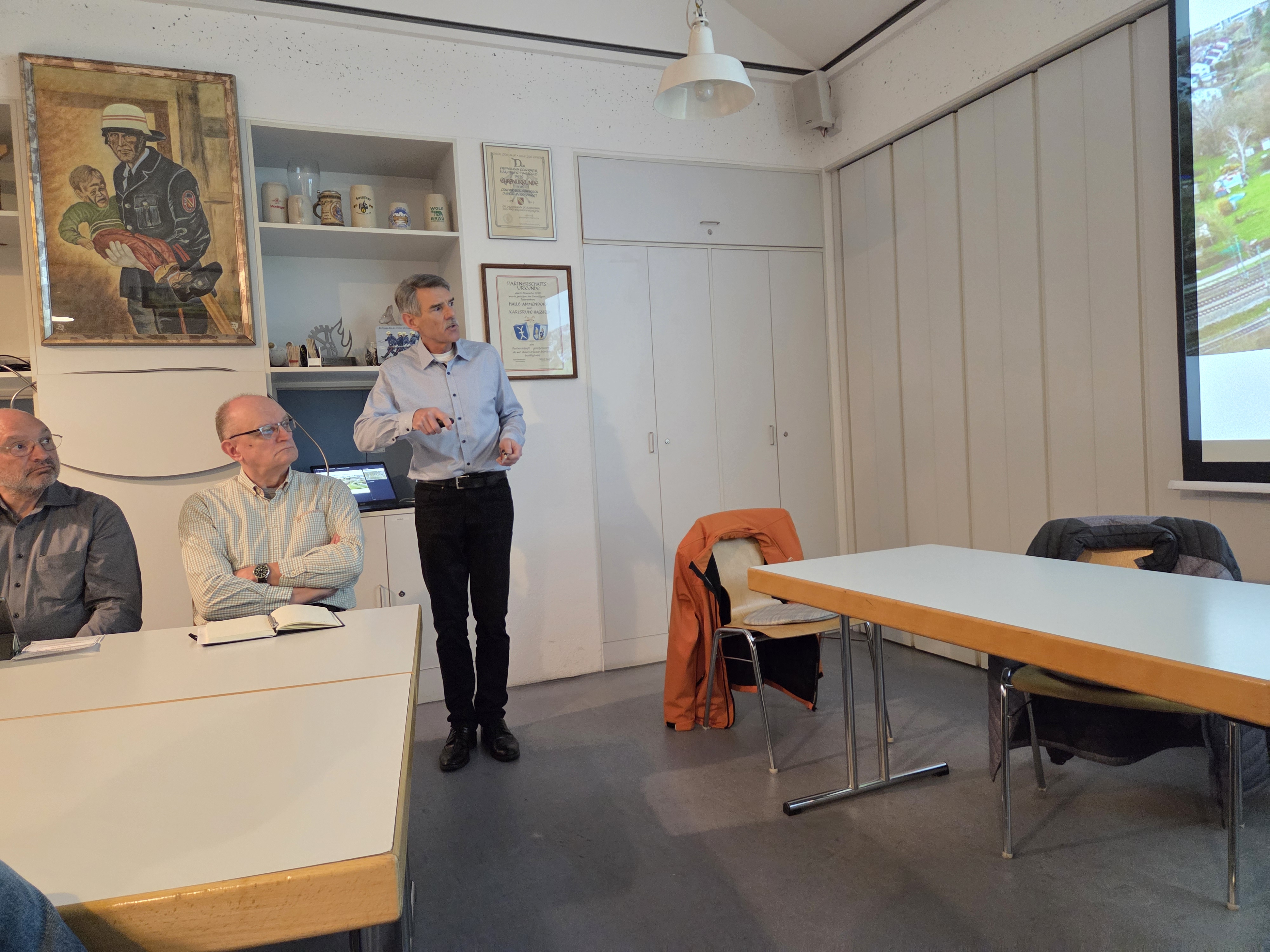 Im Mittelpunkt der Veranstaltung standen die aktuellen Sachstände zur geplanten Südumfahrung sowie zum Ausbau der Strecke der Deutsche Bahn. Thomas Schäffner und Vertreter der Bürgerkommission informierten umfassend über den derzeitigen Planungsstand, laufende Abstimmungen sowie die nächsten Schritte in den jeweiligen Verfahren.